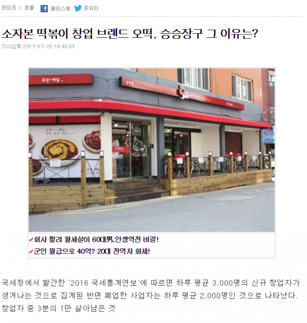 새로운소식 언론보도 | 소자본 떡볶이 창업 브랜드 오떡, 승승장구 그 이유는? 페이지 정보 작성자 오떡 작성일17-09-12 19:18 조회수 3,947회 이전글 다음글 목록 본문 링크>> http://sports.chosun.com/news/ntype.htm?id=201707260100233510017206&servicedate=20170725 관련링크